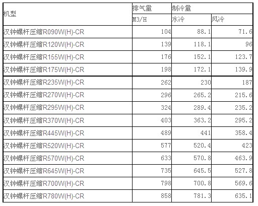 漢鐘標(biāo)準(zhǔn)水冷/風(fēng)冷螺桿壓縮機(jī)參數(shù):